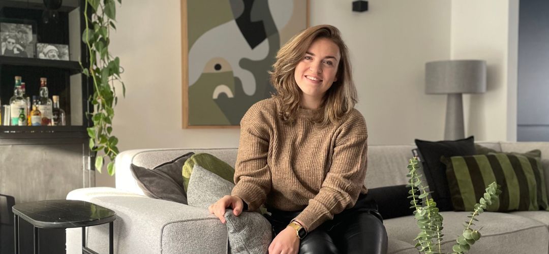 Onze salontafel, omdat dit een dure aankoop is geweest. We wilden een praktische, mooi uitziende en een wat grotere salontafel, omdat dit past in de ruimte. Deze tafel vind ik tijdloos en die zou ik altijd meenemen. Het tweede item wat ik mee zou nemen, is mijn eigen kunstwerk. Dit vind ik iets origineels, niemand heeft het en het past bij ons huis. Bovendien heb ik het zelf geschilderd en dat vind ik ook waardevol. Als derde item, de bank. De bank vind ik tijdloos, past in een kleurrijke inrichting, maar ook in een Japandi en industrieel interieur. Deze bank past altijd. Dus stel je gaat verhuizen, dan kun je hem altijd meenemen, want hij past bij alle stijlen.