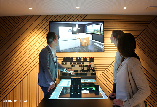 - In de winkel staat de 3D-ontwerptafel voor je klaar. Kies jouw favorieten uit. Van keukenfrontjes en werkblad, tot spoelbak en afzuigkap. Bouwstenen die staan voor die keukenelementen leg je op de tafel. En dan verschijnt direct jouw keukenontwerp in 3D op het tv-scherm. Je droomdesign thuis nog eens bekijken? Laat je e-mailadres achter en we sturen ‘m je op.